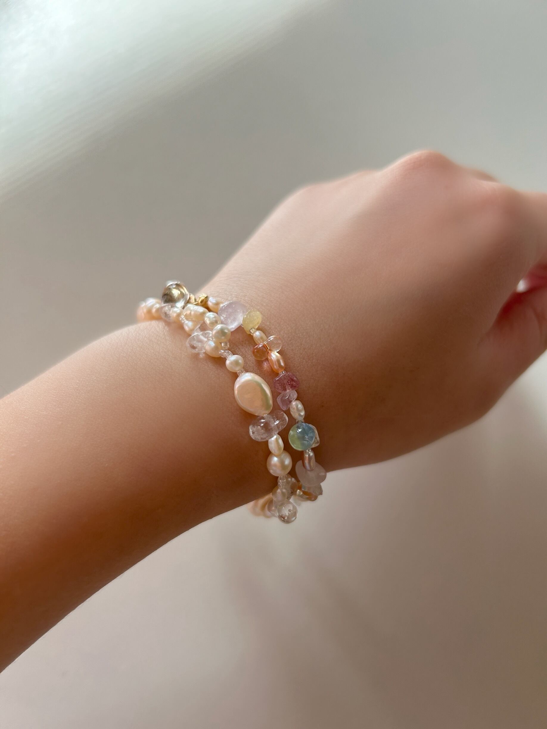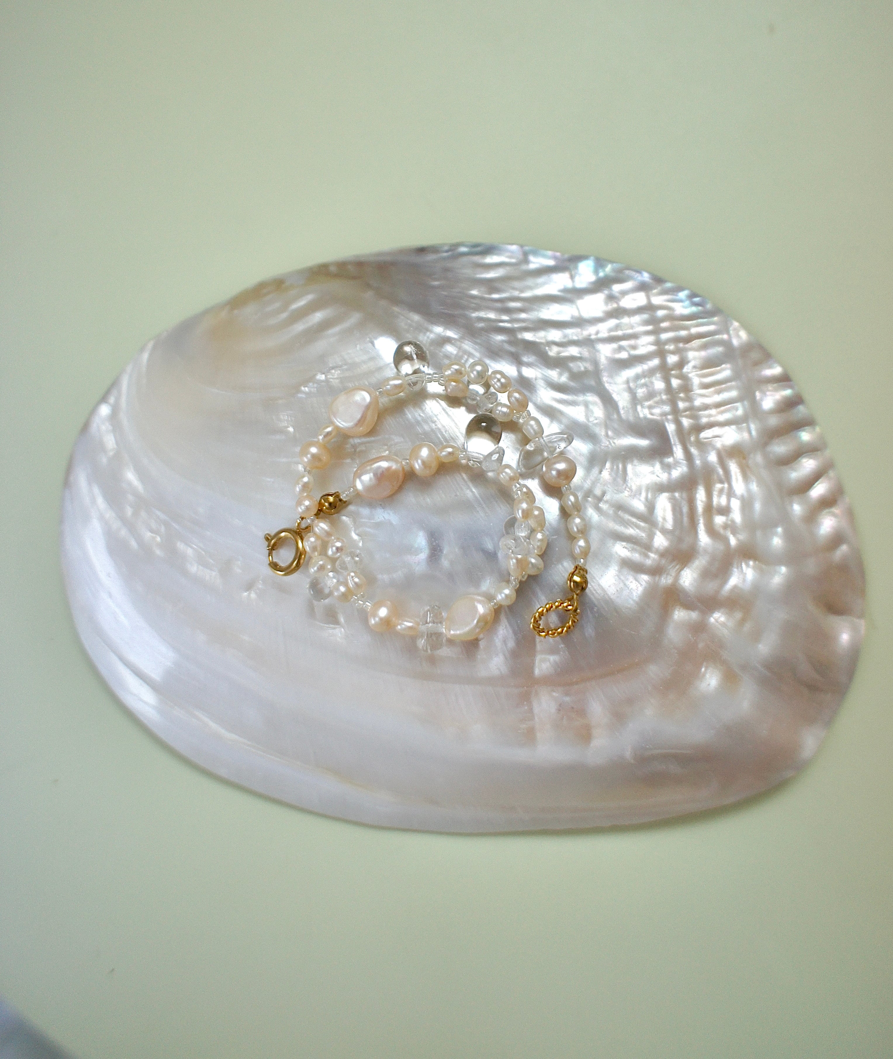 淡水パールをふんだんに使用し、繊細でエレガントなブレスレットに仕上げました。